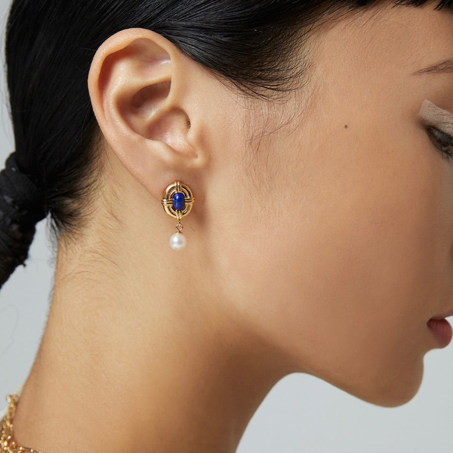 A playful twist on timeless elegance, the Blue Orbit Set pairs celestial blue lapis with radiant gold and a touch of pearl luster. The necklace and earrings bring together vintage-inspired details with a modern edge, making them perfect for both everyday style and evening glam. Wear this set to add a pop of bold color and youthful energy to your look—classic, but never old-fashioned.
