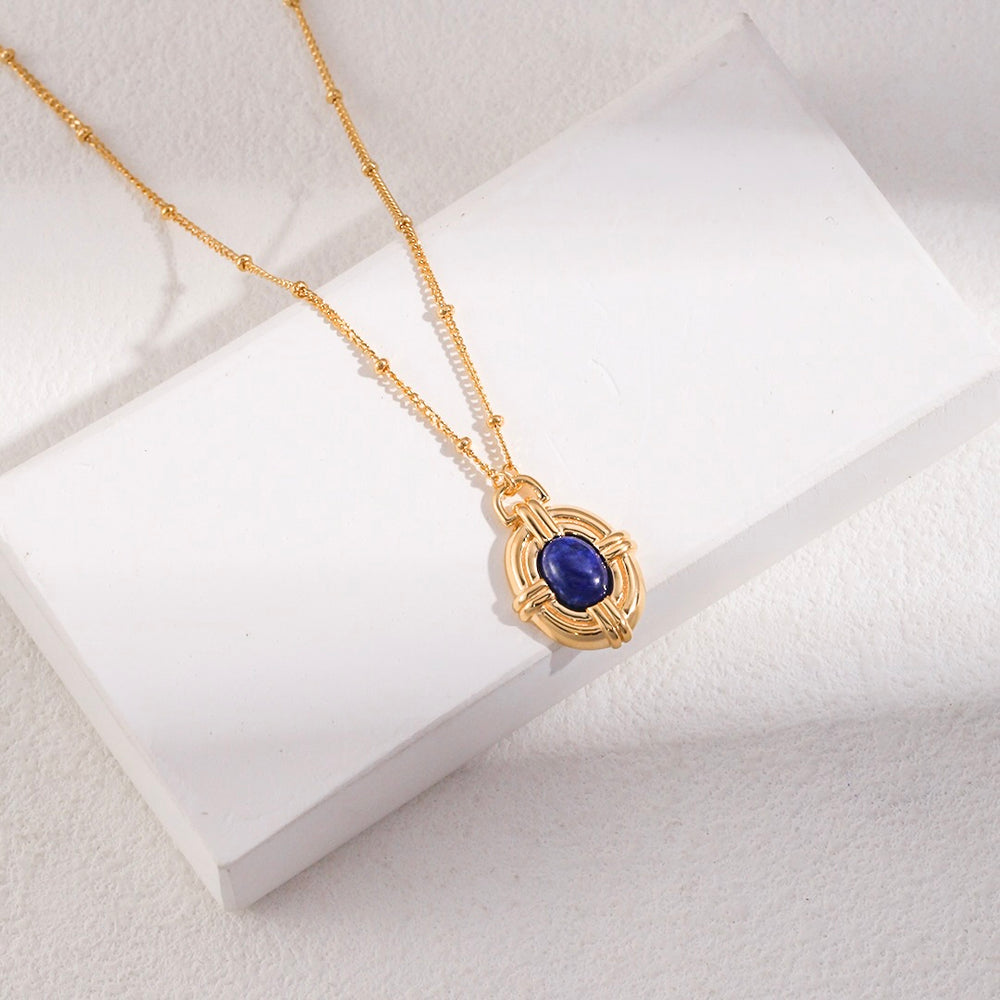 A playful twist on timeless elegance, the Blue Orbit Set pairs celestial blue lapis with radiant gold and a touch of pearl luster. The necklace and earrings bring together vintage-inspired details with a modern edge, making them perfect for both everyday style and evening glam. Wear this set to add a pop of bold color and youthful energy to your look—classic, but never old-fashioned.