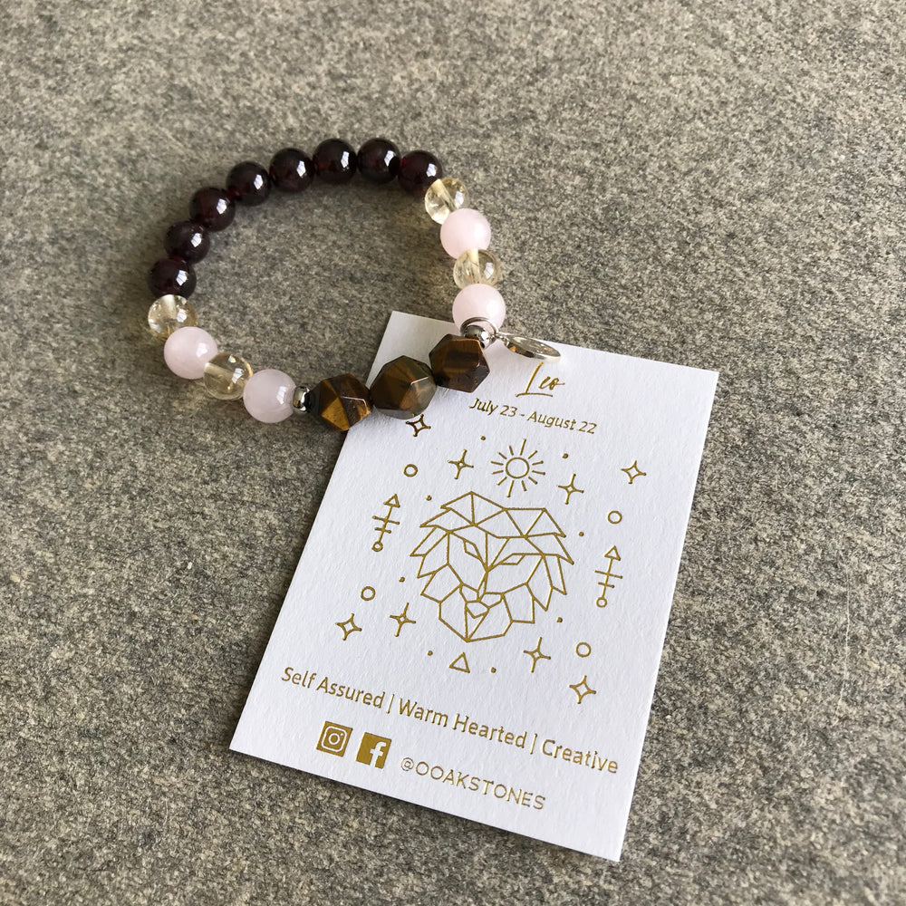 Garnet. This gemstone is very similar to the Leo symbol of the lion, promoting loyalty, strength and courage. It helps achieve greater self-confidence and emotional balance, along with keeping you calm and centred. Because it brings out the exuberance of the Leo energy, it can ignite your creativity and the power of manifestation.