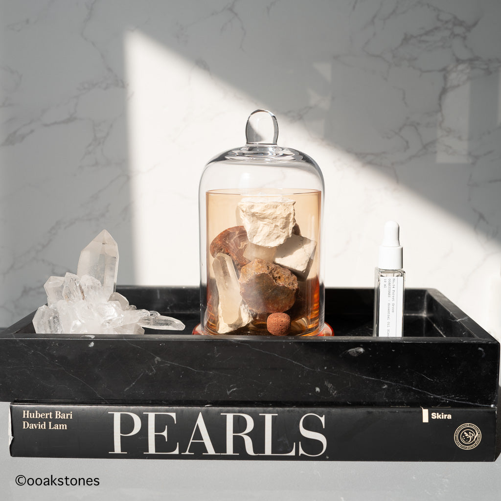 Immerse your space in a symphony of scent and energy. Each OOAKSTONES Crystal Diffuser set features an individually crafted glass jar, a curated bag of natural crystals, and a matching fragrance oil crafted to harmonize with the stones’ vibration.