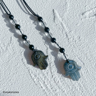 Combining the Hamsa Hand with black tourmaline & clear quartz in this crystal charm, this is a powerful talisman to guard against unwanted energies. Place this ancient symbol of protection, strength and power, in your car, front door or your window to provide an extra layer of energetic protection to your space and for a stronger sense of safety.